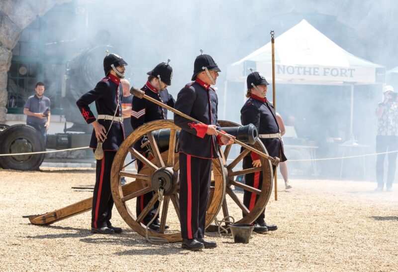 There are no age limits to becoming a Nothe Fort Artillery Volunteer. Uniforms and muskets are provided after an initial training period and safety assessment* – adhering to a similar strict attention to detail and standards of behaviour as their Victorian predecessors – but great fun!
